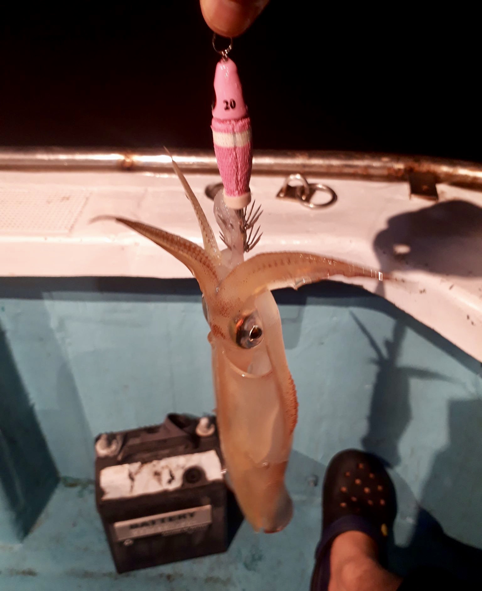 愛用のhundred55hを手に、最初の底では20号極ピンクサウスッテが有効で、ぼちぼちとケンサキを掛けていました。