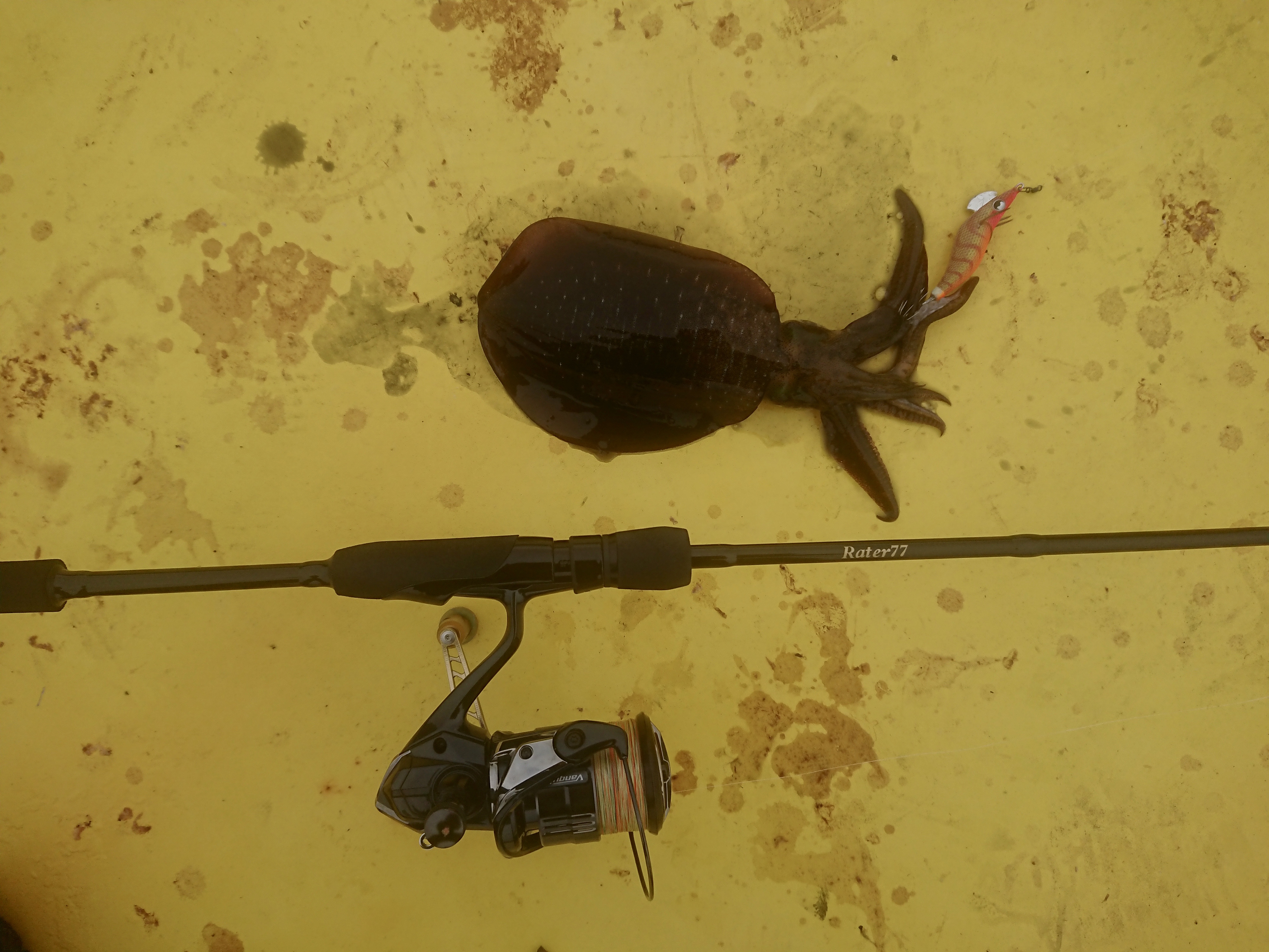 浮き堤防で、厳しい状況のなか、貴重なアオリイカと出会えました。